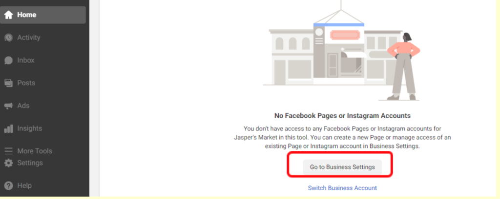 STEP 3: Now, we need to do the basic setup of the Business Manager pages, accounts, Instagram* accounts and grant permission to people. The dashboard looks like the image above. To carry on with Business manager settings, click on the “Go to Business Settings.”
