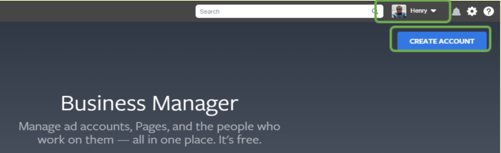 STEP 1: Go to https://business.facebook.com/overview* to create an account, or you can make use of your existing Facebook* account by clicking on your profile at the top right corner of the page.