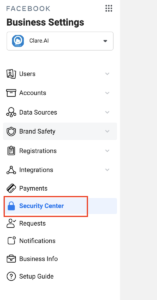 3. The ‘Business Settings’ option will take you to a sub-menu on the left navigation bar. Next, click on ‘Security Centre’.