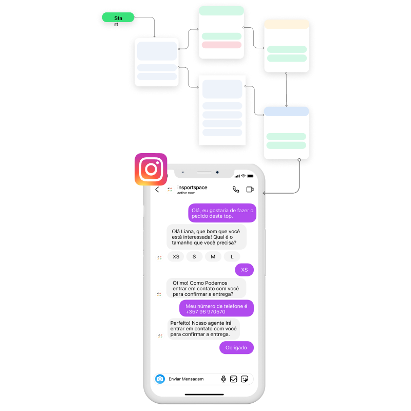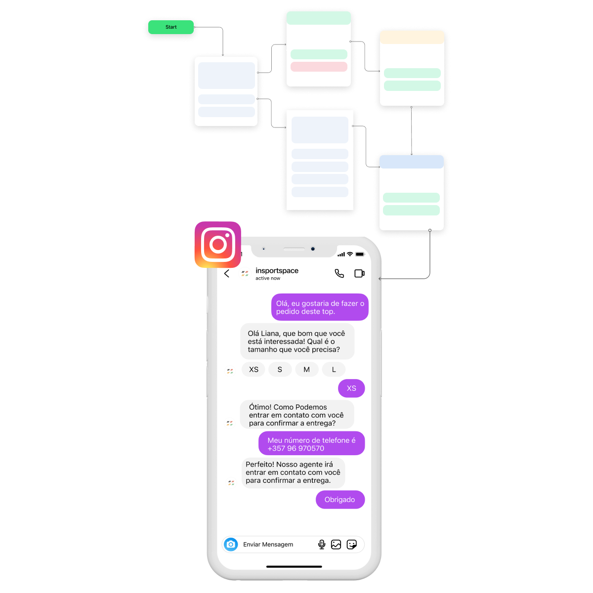 Crie chatbots ou campanhas automatizadas em um criador com um belo visual. Nenhum código necessário.