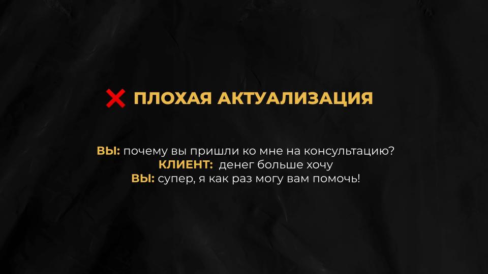 Чем глубже вы понимаете текущую ситуацию клиента, тем вероятнее, что он доверит вам решение своих проблем.