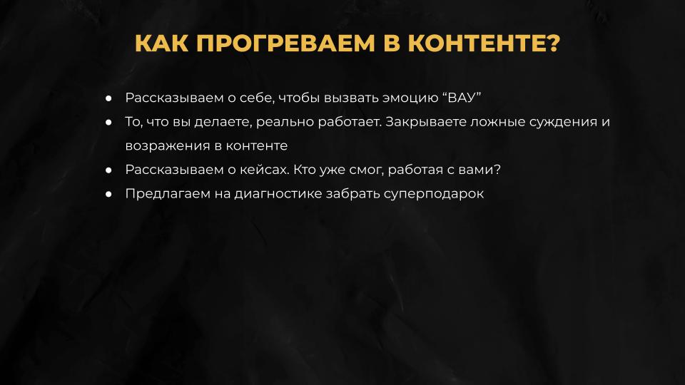 Через контент можно закрывать возражения, рассказывать о том, что конкретно вы сделали. Например, если это ниша похудения, показывайте кейсы! Вот посмотрите: Вася, Петя, Маша похудели. Они взяли консультацию по питанию. Внедрили рекомендации в свой рацион, и теперь у них больше энергии.