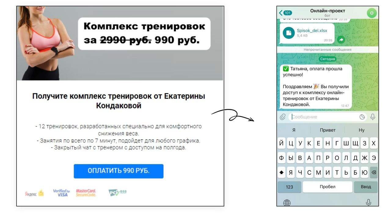 Пользователя ведут по этапам воронки, но не вручную, а автоматически, через сообщения в мессенджере. Чтобы реализовать эту схему, нужен чат-бот.