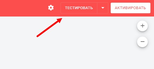 - Протестируйте то, что у вас получилось. Тестирование позволяет запустить бота в тестовом режиме только для себя и проверить его работу. Для начала теста, нажмите на кнопку «Тестировать» справа сверху.