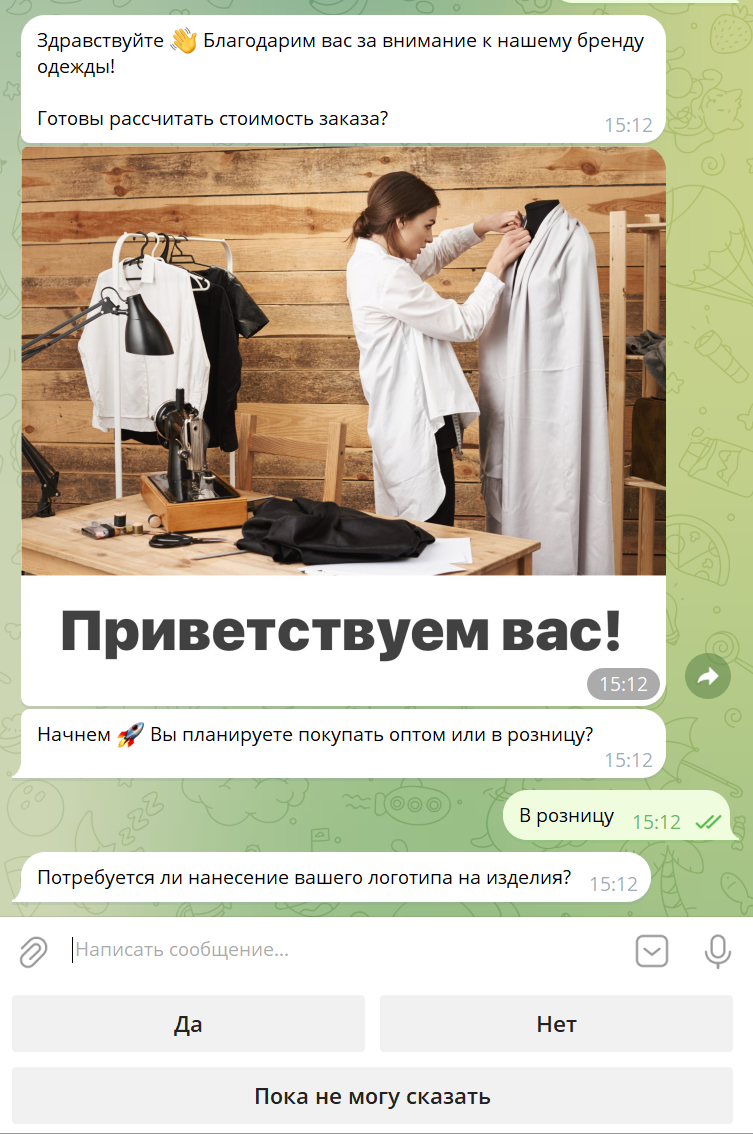 Прекрасным примером будет бот-квиз. В интерактивном формате он сегментирует аудиторию и собирает данные, подводя пользователя к заказу.