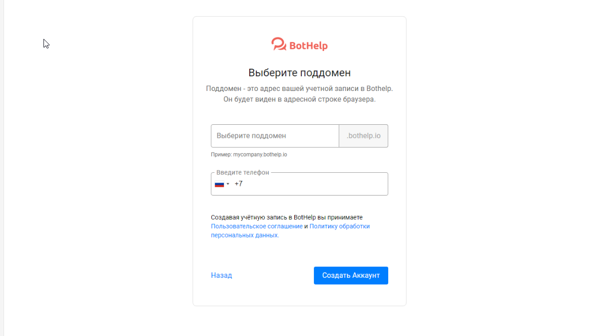 Внимательно выбирайте поддомен своего аккаунта, так как в будущем уже не получится его изменить.