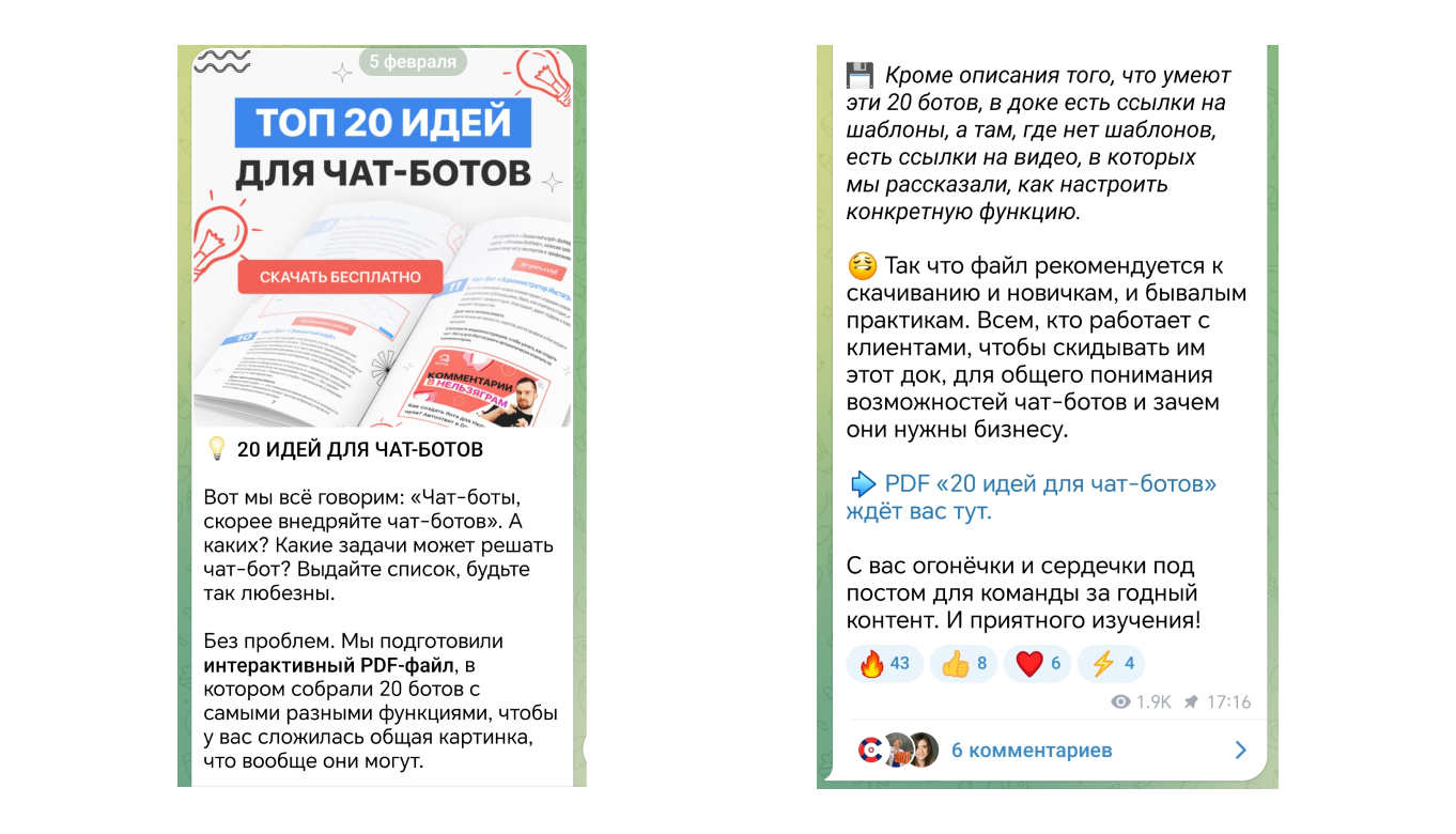 Актуальность и релевантность — отвечает текущим интересам аудитории, трендам. Так, профи в чат-ботах гайд «Как оформлять Telegram-бота» будет неинтересен, потому что они уже на этом собаку съели, а вот новичкам-ботоделам очень даже будет интересно.