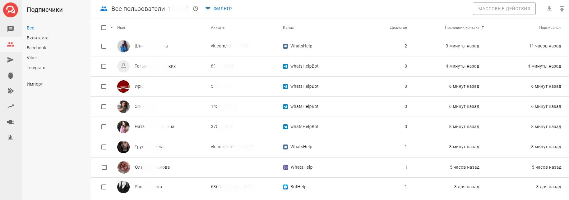Для этого вам нужно подключить выбранные мессенджеры к платформе BotHelp. Каждый, кто напишет вам в чат, попадет в базу, и вы сможете отправлять им сообщения с новостями компании, акциями и скидками.