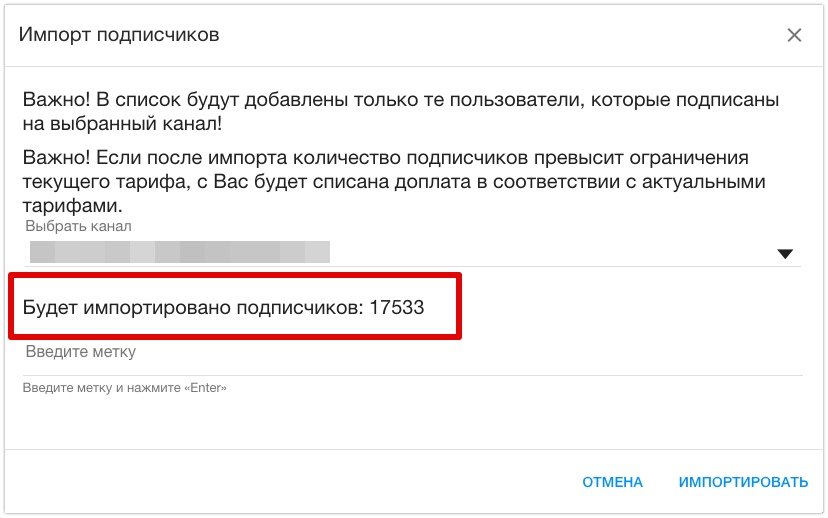 👉Пошаговая инструкция по импорту подписчиков здесь.