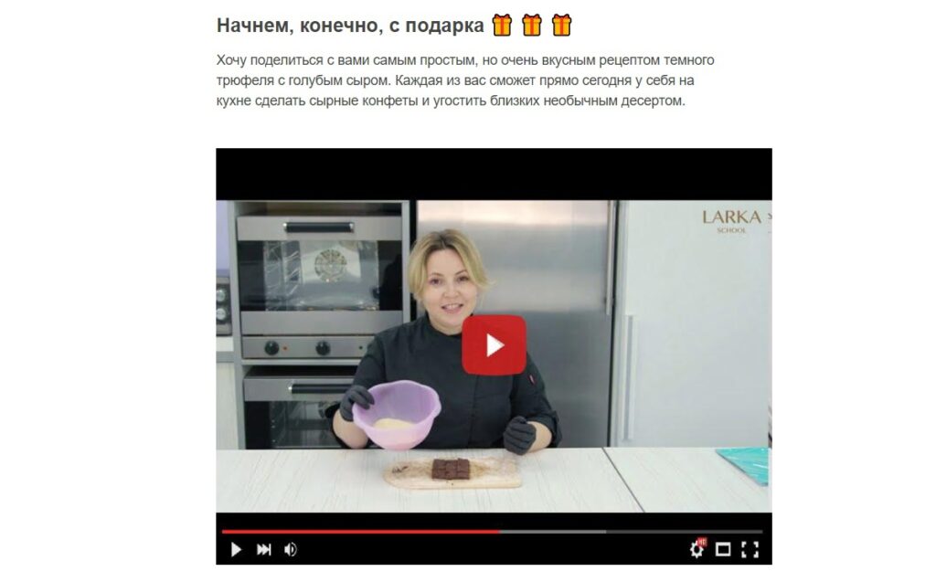 Заказчик — онлайн-школа «LarkaSchool», которая за 4 года успешно провела 15 потоков успешного обучения по изготовлению сырных конфет.
