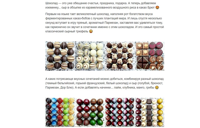 Так как эксперт и автор курса, Лариса Баранихина, сама занимается производством шоколадных трюфелей, в аккаунтах инстаграма собрана аудитория не только людей, желающих освоить новый вид деятельности, но и кондитеры, сыровары, а также довольные покупатели сырных конфет, которым интересно узнать больше об изготовлении конфет.