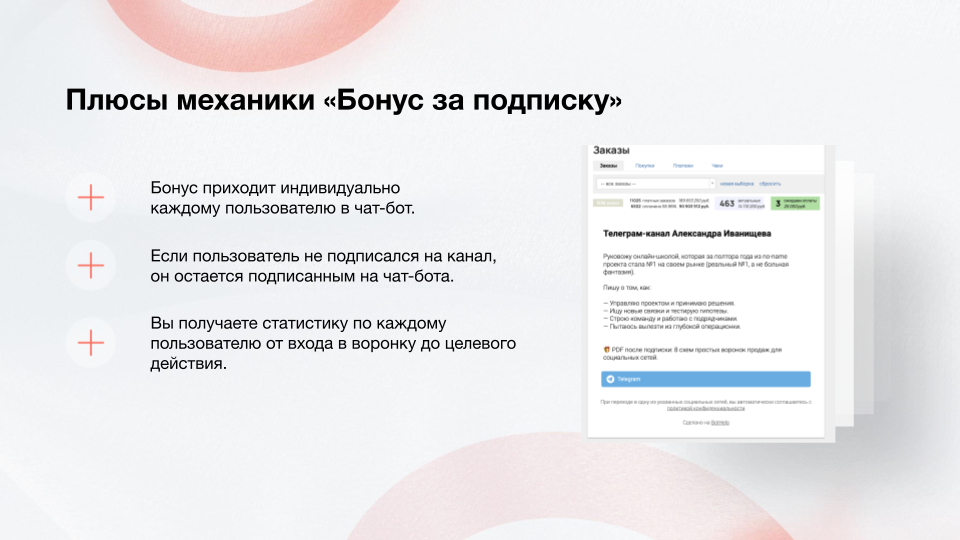 За баллы вы предлагаете подписчикам какие-то бонусы: гайд, доступ к закрытому вебинару, бесплатную консультацию.