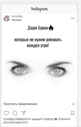 В результате было получено 72 подписчика, из них 23 записались на процедуру бесплатные брови. При таких процедурах некоторые клиенты меняют решение и делают сразу перманентный макияж. Остальных добавили в авторассылку, и через неделю они получат рассылку примерного содержания «Только для моих подписчиков сегодня брови за 3000 руб.»