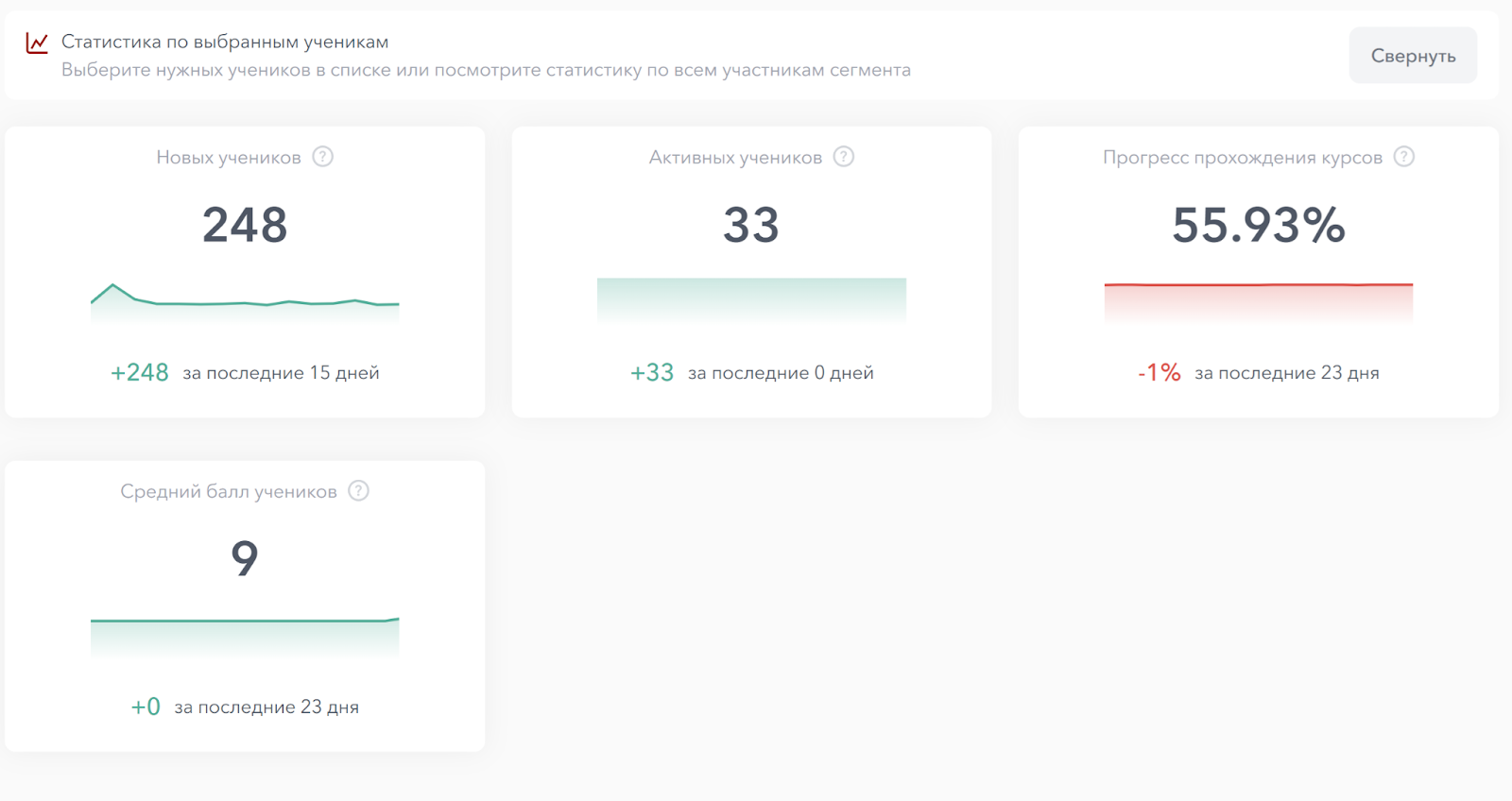 Когда на курсе обучается много людей, платформа позволяет эффективно управлять группами, распределять задания и отслеживать прогресс каждого ученика.