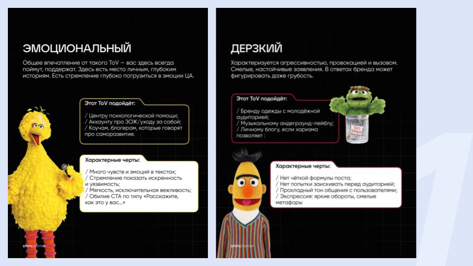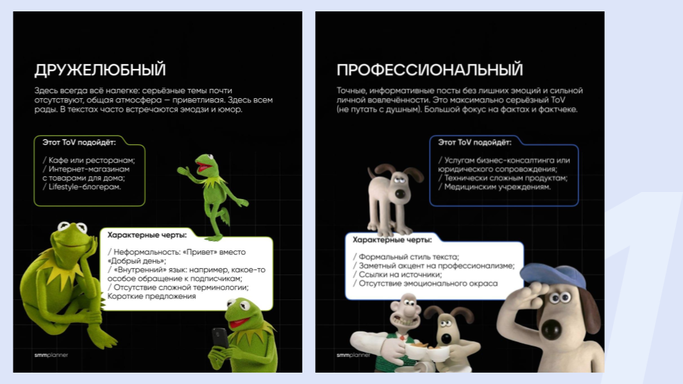 - какие у нас типы Tone of Voice,