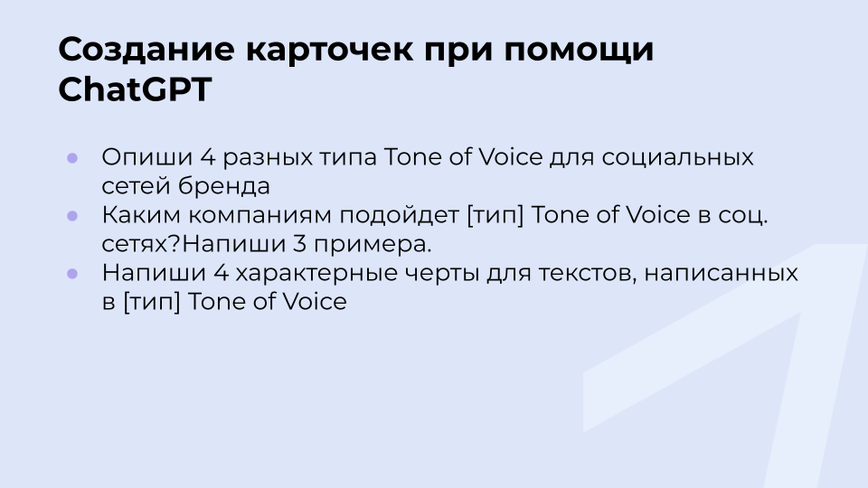 - Использовать нейросеть как помощника по маркетингу. Её можно попросить сегментировать аудиторию, выявить боли и потребности, придумать темы постов. На основе этой информации создавать посты.