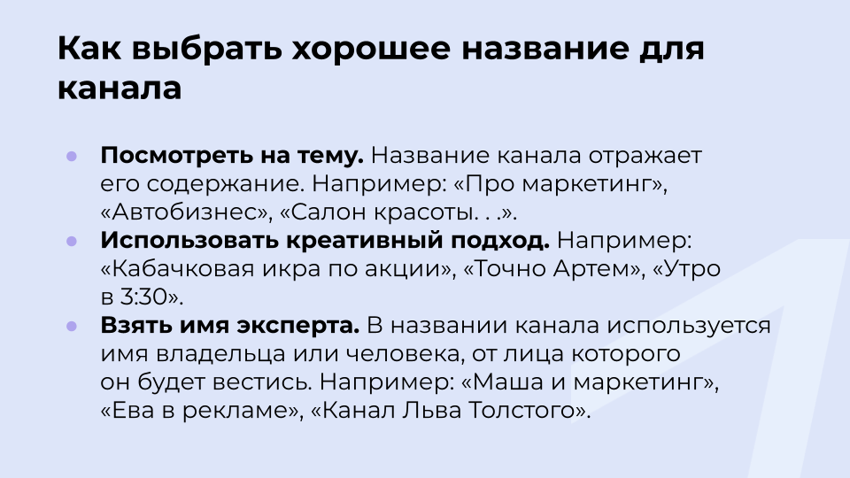 Шаг 3. Придумать название канала