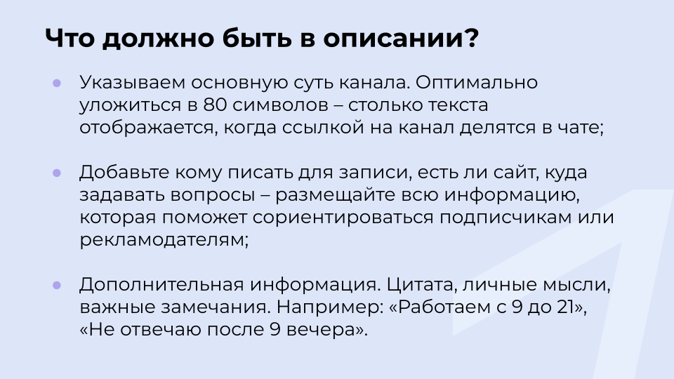 Шаг 4. Придумать описание канала