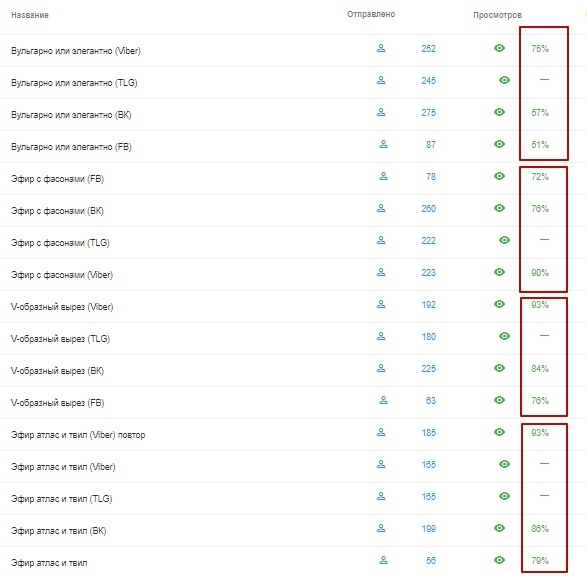 Открываемость писем от 70% и выше (статистика Телеграм не показывается, но по обратной связи потом в мессенджерах, предполагаю открываемость тоже на уровне)