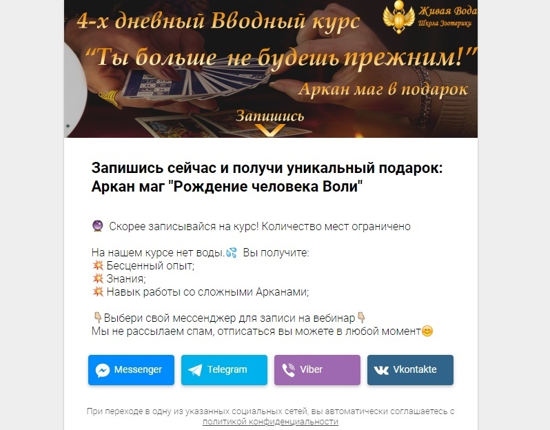 На скриншоте не очень видно суть, расскажу более детально: человек попадает в воронку через таргет и первое, что он видит, это лендинг