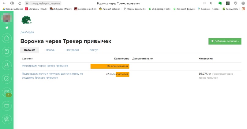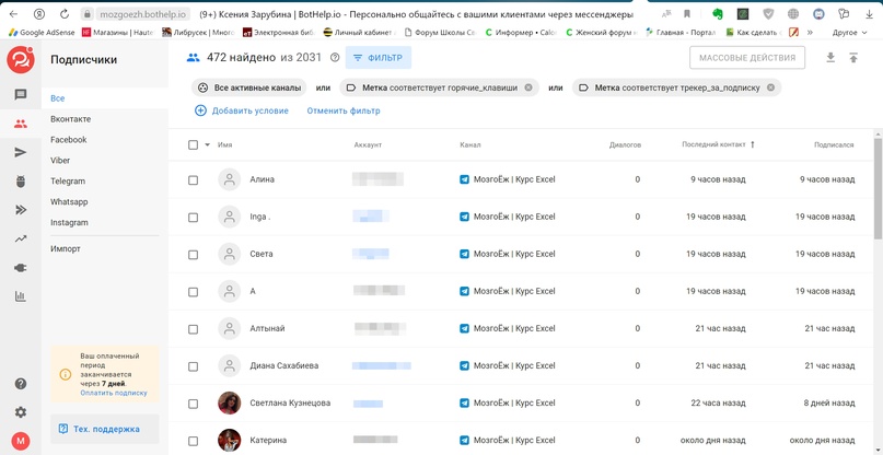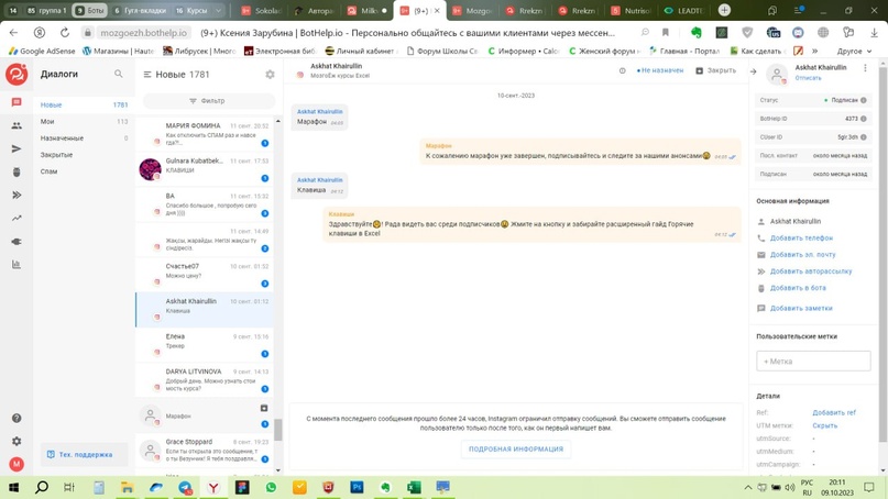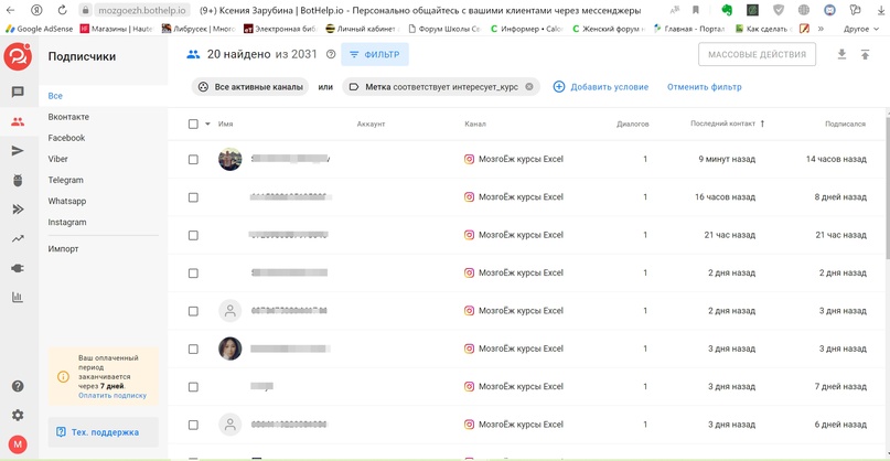 И финальный, самый интересный на сегодня скрин, это количество лидов на курс. Все эти люди запросили информацию по курсу, ждут старта продаж. Но в этом списке нет тех, которые запросили информацию до того, как нам удалось привязать Нельзяграм к БотХелпу, таких набралось около 10 человек.