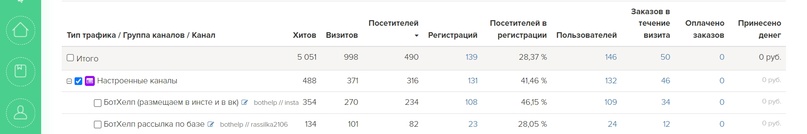 В Гекурс статистика трафика из БотХелпа выглядит следующим образом: