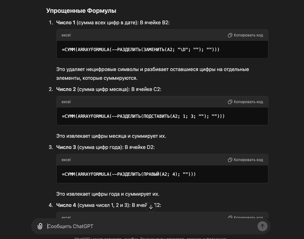 BotHelp отдаёт дату рождения, она попадает в ячейку А1, формула преобразует дату в отдельные числа, которые мы теперь можем складывать. Не будем вдаваться во все подробности расчётов, так как это уже скучная математика со своими изъянами, которые возникали в процессе. После этого мы получаем итоговое число и помещаем его в ячейку B1. Из B1 BotHelp забирает число, помещает его в поле «Код» и выдаёт человеку.
