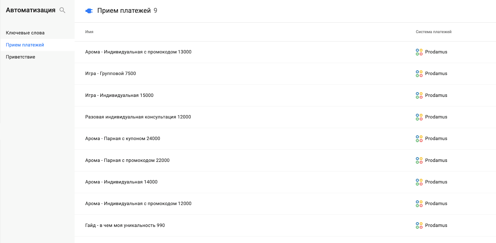 Подключена и настроена интеграция с платёжным модулем Prodamus. Настроена воронка по оплате по различным промокодам.