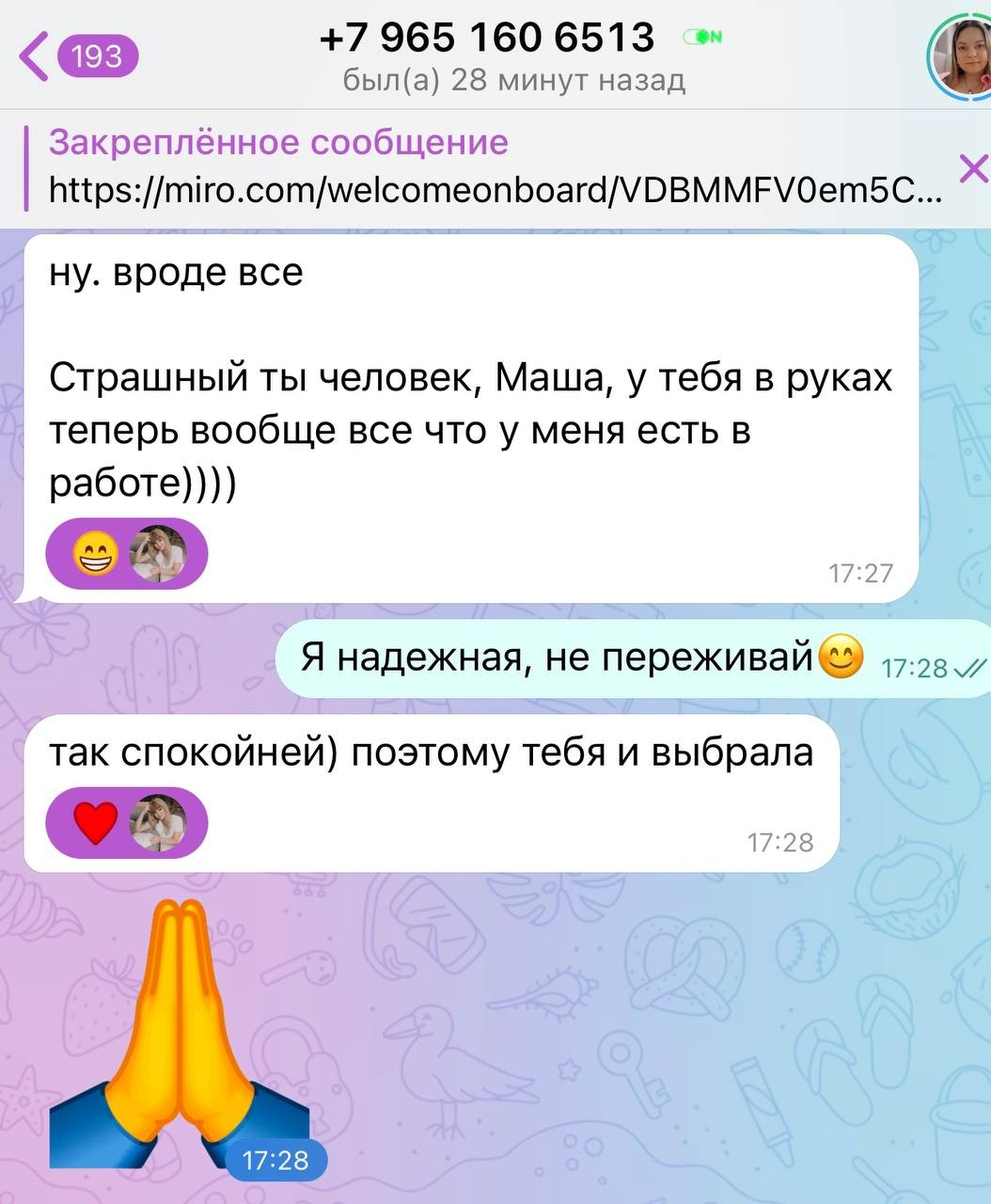 Я откликнулась на вакансию у коуча: нужно было собрать чат-бота, через который пользователи могли получать всю информацию от эксперта. Эксперт мог бы запускать рассылки, вести единую базу клиентов.
