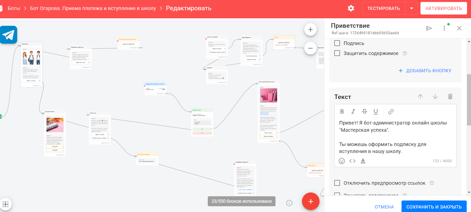 - использовать бота в мессенджерах для простоты доступа к материалам школы и организации воронки продаж.