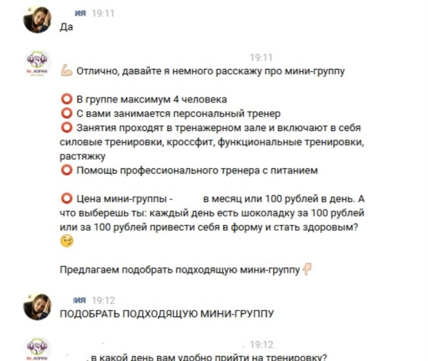 В итоге этот бот за 7 дней продал фитнес-услуг на 45 000 рублей!