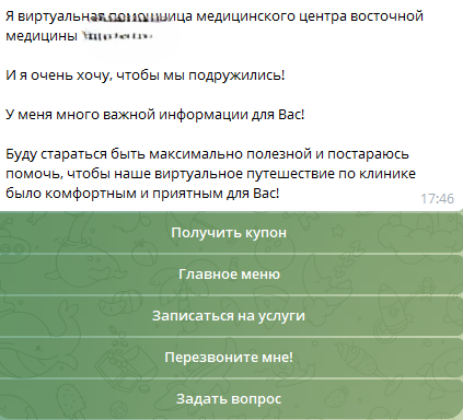 Проект находится на стадии подготовки запуска таргетированной рекламы и рекламы в Яндекс Директ (формат: продвижение телеграм-каналов), но уже отмечен рост записей в клинику через бота среди подписчиков Telegram-канала. Заказчик протестировал бота и очень доволен удобством и функциональной доступностью чат-бота.