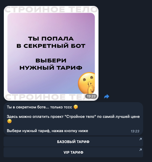 Мы её назвали «Проверка легальности». При входе в бота происходит проверка меток. Если человек не оплатил, дальше он не пойдёт.