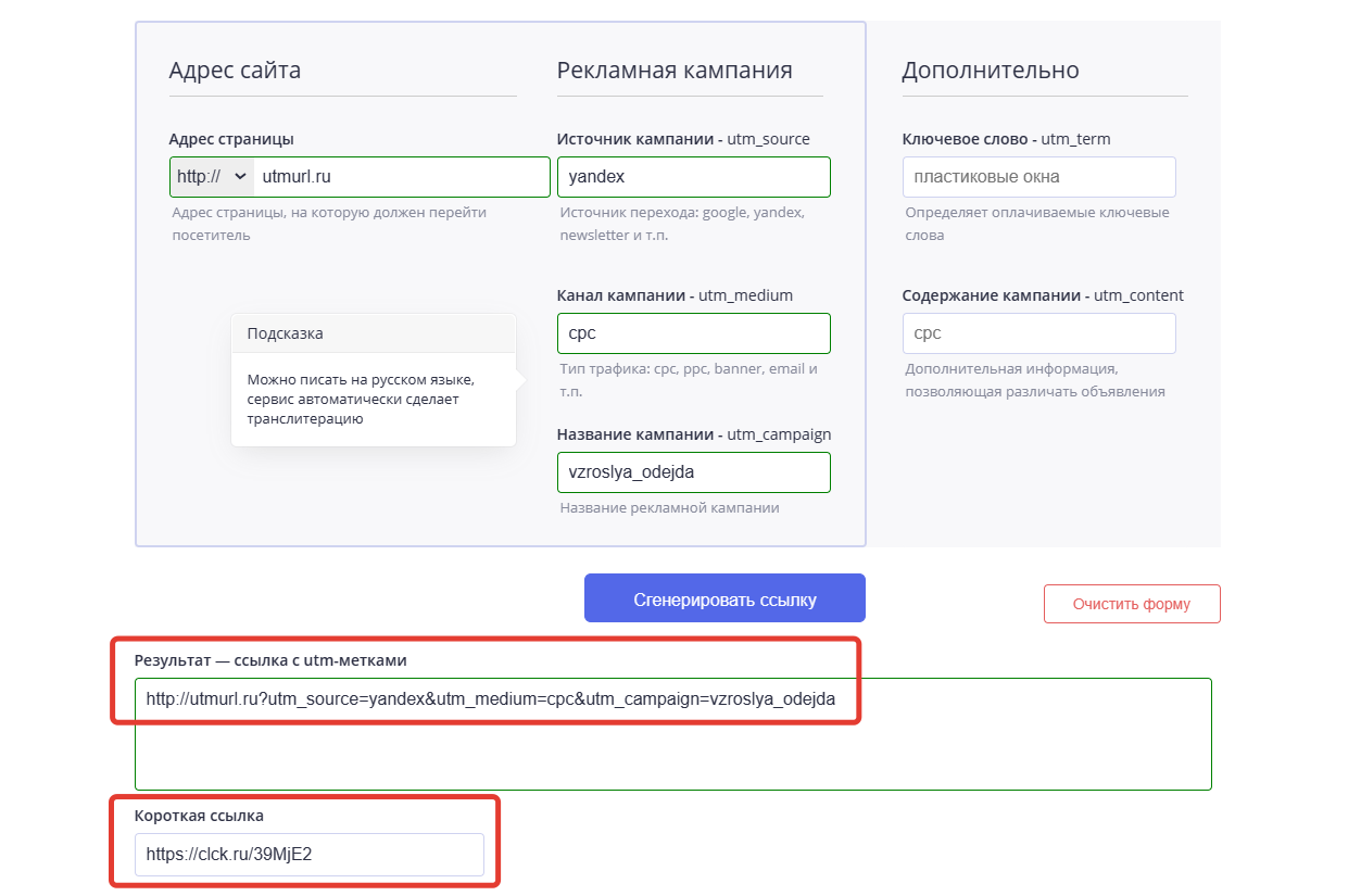Генераторы UTM-меток