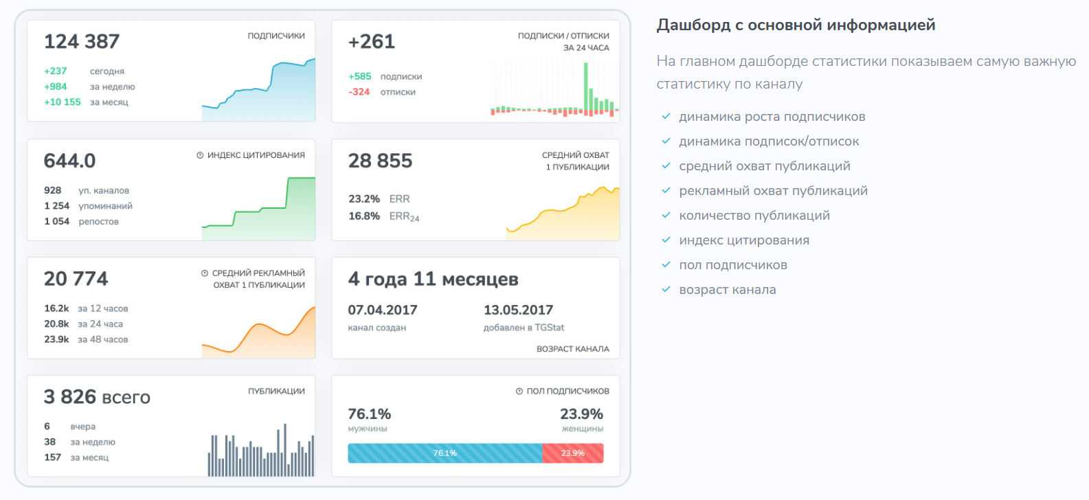 TGStat — сервис, который собирает статистику каналов и чатов в Telegram. Обновляется ежедневно и дает информацию о популярных каналах, блогах, СМИ.