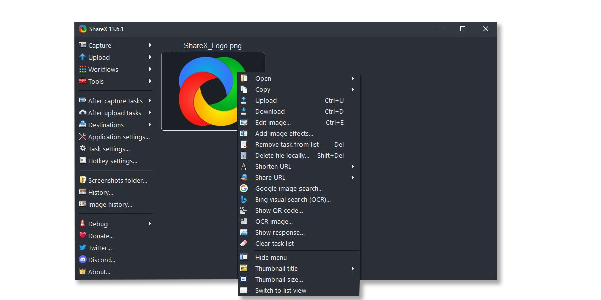 ShareX — многофункциональная утилита, чтобы снимать скриншоты и скринкасты с экрана монитора. Есть дополнительные инструменты для редактирования и обработки скринов.