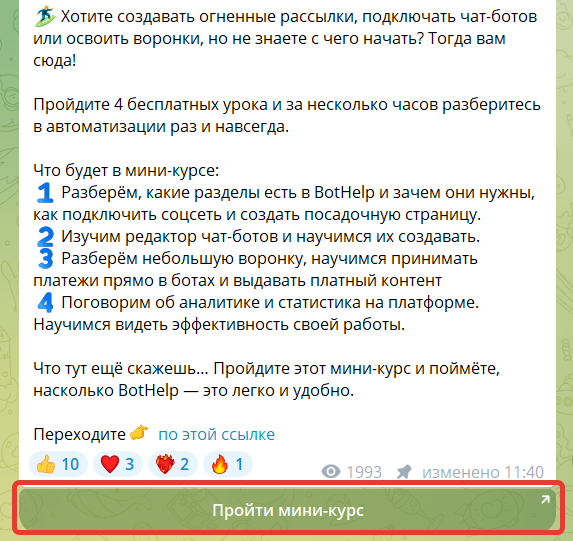 - Кроме ботов, в BotHelp можно делать рассылки, авторассылки и посадочные страницы для рекламы (мини-лендинги) с конверсией до 70%.