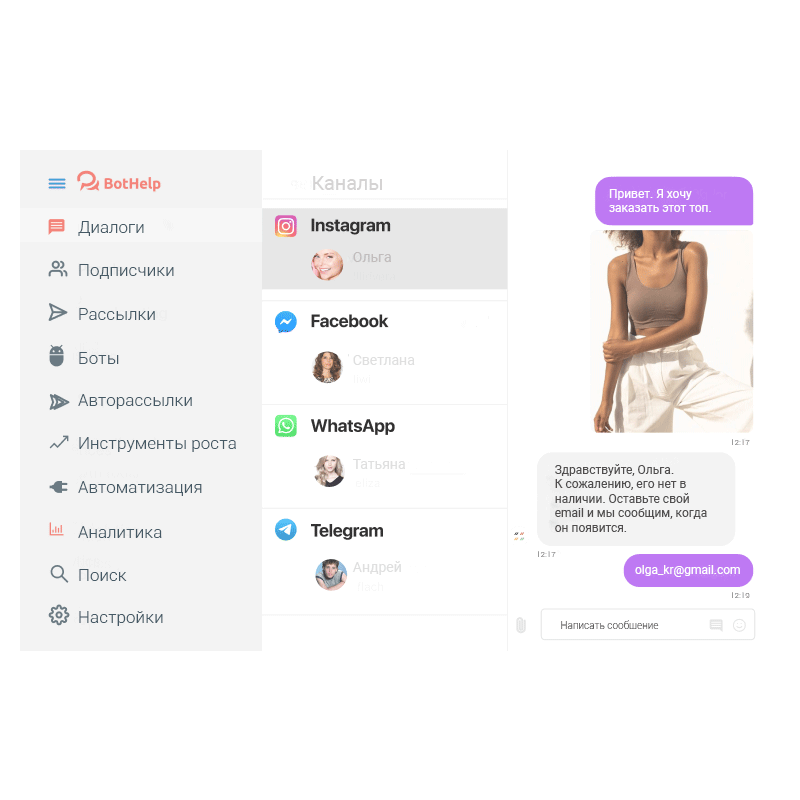 Делайте ручные персонализированные рассылки в мессенджеры, сегментируя аудиторию при помощи правил. Составляйте цепочки автоматических сообщений для прогрева подписчиков.