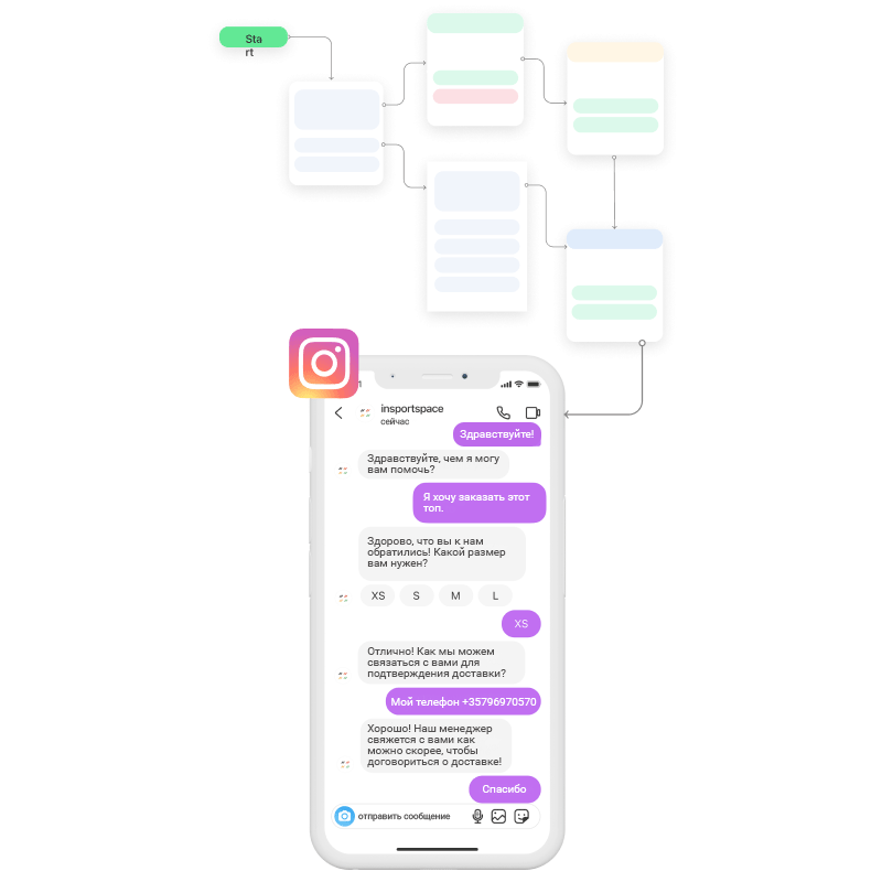 Создавайте автоворонки, опросы и сложные чат-боты при помощи визуального конструктора чат-ботов. Без программирования и технических навыков.
