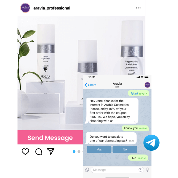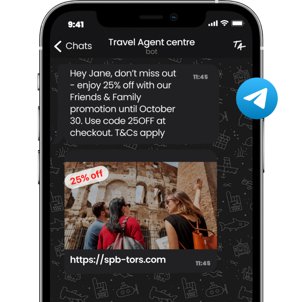 Build relationships with your customers through interactive and tailored content. With 80% open rates Telegram beats email and other channels. Send shipping updates, delivery reminders, booking confirmations and promotions. With Telegram unlike other messengers it is so easy!