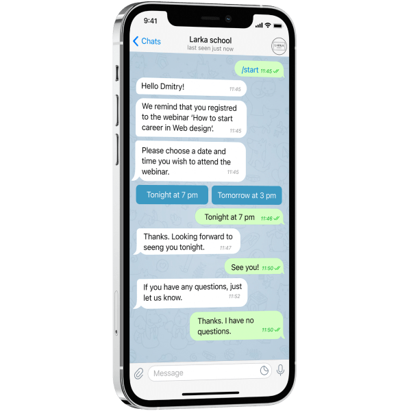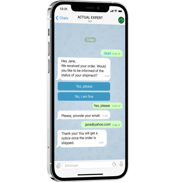 With a chatbot, your brand can reply instantly and provide necessary support on an entirely new level. A bot can resolve up to 80% of customer inquiries, make an upsell and send auto-replies even in the night so you save time and resources and win more business.